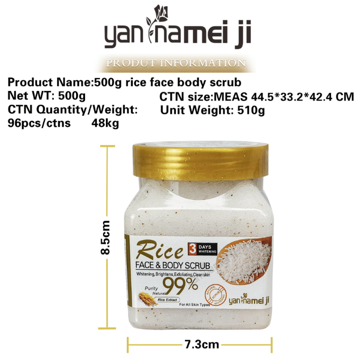The Factory Wholesale Rice Wheat Body Scrub is an advanced organic exfoliating formula that gently removes dead skin cells, unclogs pores, and promotes radiant skin. Made from natural rice, wheat, and sea salt, it effectively cleanses and smooths the skin while enhancing brightness and softness.