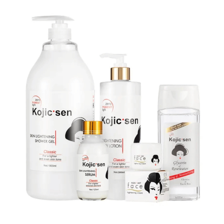 A deeply hydrating whitening body lotion infused with Kojic Acid, Collagen, and Hyaluronic Acid, designed to brighten and even skin tone while keeping your skin moisturized and glowing.